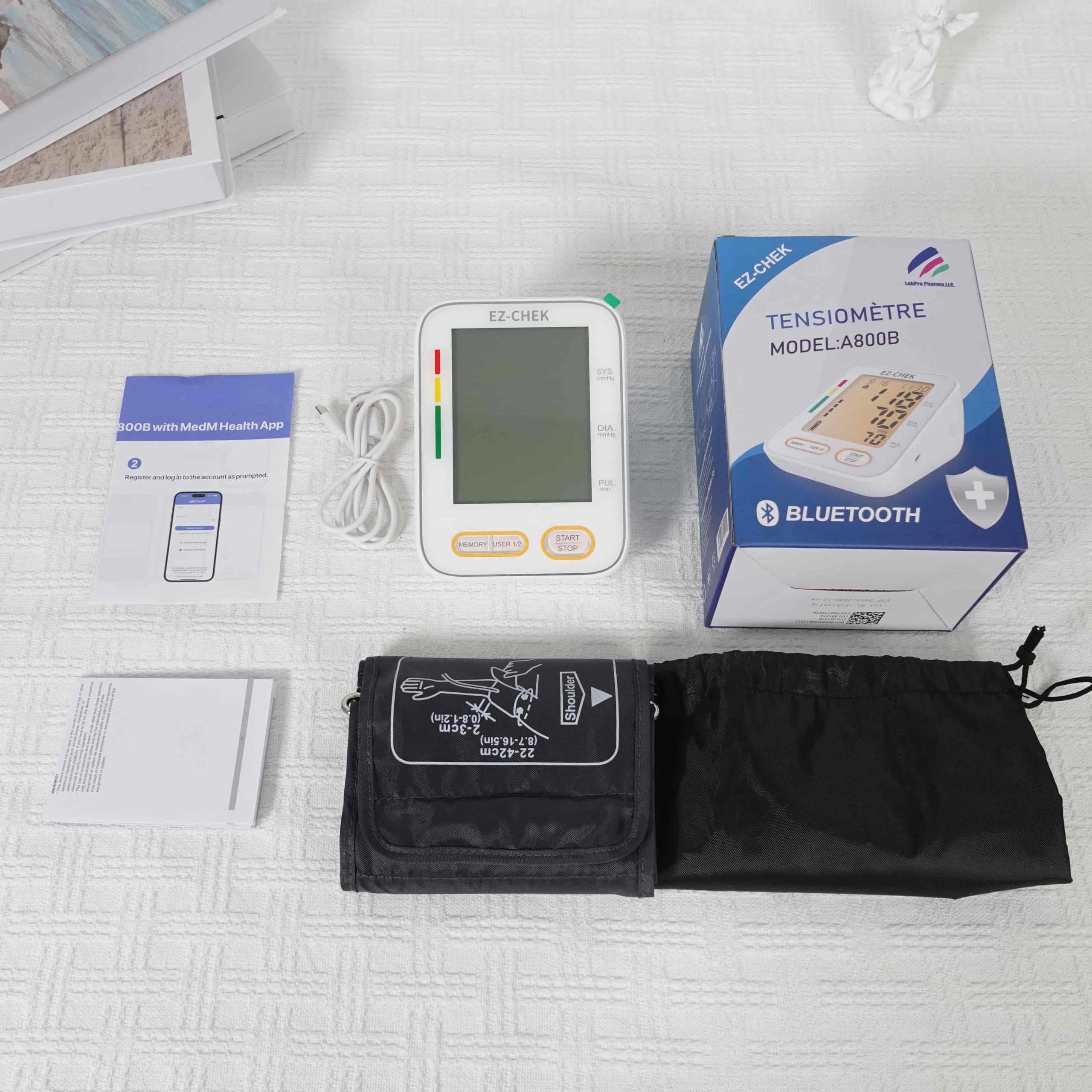 EZ-CHEK Blood Pressure Monitor A800B is a digital BP monitor with Bluetooth connectivity and a large 42cm cuff, designed for accurate, fast, and comfortable blood pressure measurement at home.