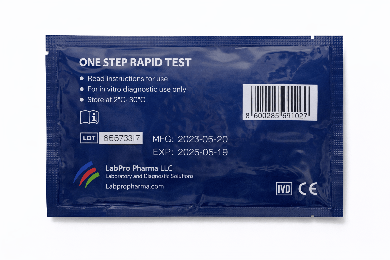 Each test is manufactured under strict quality control standards and complies with international medical device regulations. The pouch includes essential information such as lot number, manufacturing date, expiry date, and storage conditions.